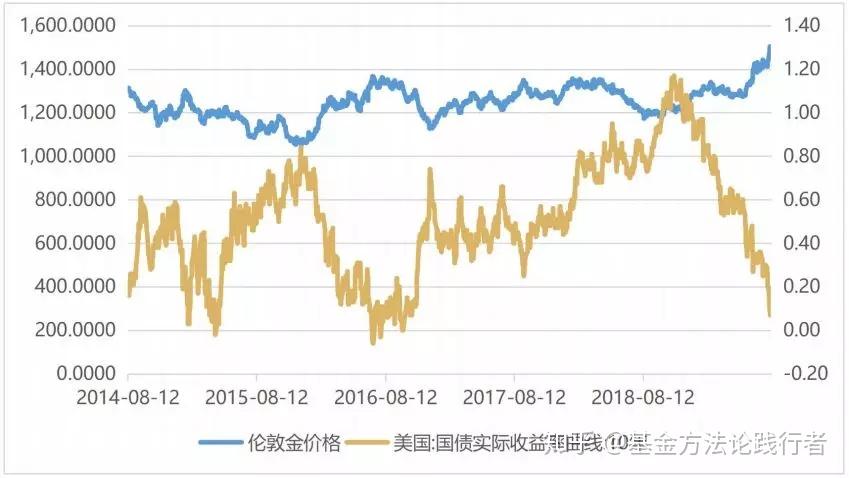 其中避险需求和投机需求对价格的影响时间相对较短,民间流传有“乱世藏黄金”的说法,外部不确定性越大,避险需求越强;另外,投机者越多,投机资金越多,极端情绪下黄金价格在中短期内也会发生明显变化。8月以来黄金基金净值大幅增长7.2%,主要是中美贸易关系恶化,叠加在经济放缓背景下全球央行先后采取降息措施,从而引发市场担忧情绪加重,避险需求快速上升,投机资金加速流入,黄金价格迅速上涨。从较长时间周期看,黄金的价格主要受到配置需求的影响,美国实际收益率是观察配置需求的一个有效指标,美国实际收益率走弱,黄金的相对配置价值增强。国家货币当局增持黄金也是黄金需求提振价格上涨的重要因素,值得关注。